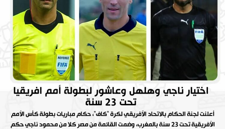 أعلنت لجنة الحكام بالاتحاد الأفريقي لكرة “كاف”، حكام مباريات بطولة كأس الأمم الأفريقية تحت 23 سنة بالمغرب، وضمت القائمة من مصر كلا من محمود ناجي حكم ساحة ، سامي هلهل حكم مساعد، ومحمود عاشور حكم فيديو.