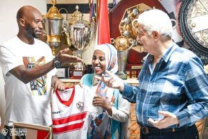 كما حرص محمود عبد الرازق ” شيكابالا” قائد الفريق الأول لكرة القدم بالنادي على التواجد في مكتب رئيس النادي أثناء تكريم الطالبه، ومنحها قميص الزمالك.