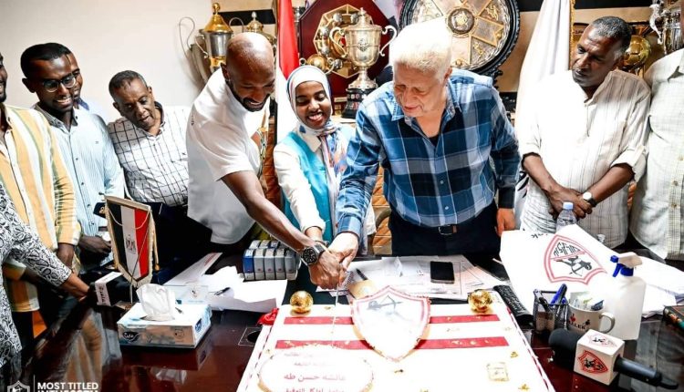 وأحضر مسئولو الزمالك تورتة للاحتفال بالطالبة وأسرتها في مقر القلعة البيضاء.