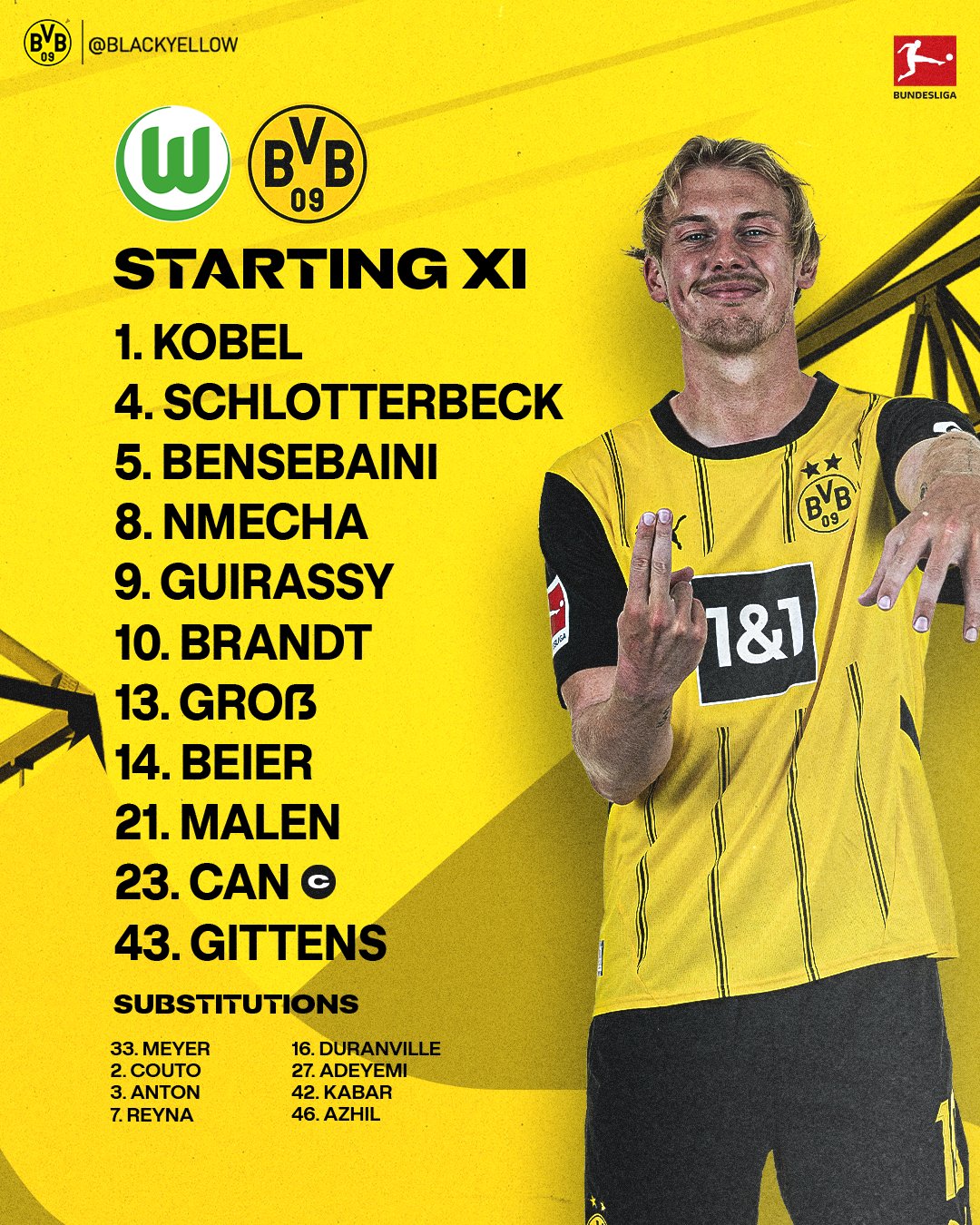 كشف نادي بوروسيا دورتموند عن التشكيلة الرسمية التي سيخوض بها مباراته أمام فولفسبورج ضمن الجولة الـ15 من الدوري الألماني.