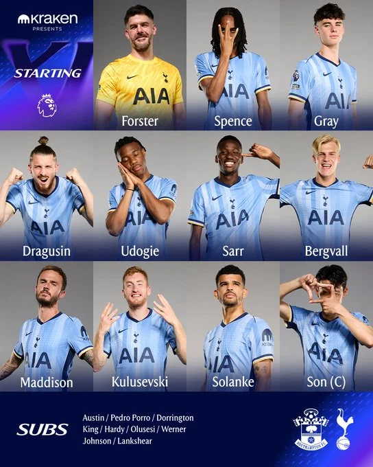 أعلن الجهاز الفني لفريق توتنهام عن التشكيل الرسمي للمباراة ضد ساوثهامبتون، والتي ستُجرى مساء اليوم الأحد في تمام التاسعة على ملعب “سانت ماري” ضمن منافسات الجولة السادسة عشرة من الدوري الإنجليزي الممتاز للموسم 2024-2025.
