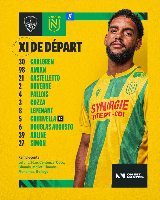 وتواجد مصطفى محمد لاعب نانت على دكة البدلاء في المباراة أمام ستاد بريست.