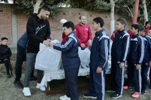 والمهاجم دودو الجباس، حيث شارك النجمان في مباراة لكرة القدم مع أيتام الدار، وقاما بتوزيع مجموعة من الهدايا على الأطفال وبعض الملابس لمواجهة موجة البرد، مقدمة من جانب نادي بيراميدز بالتعاون والتنسيق مع بنك الكساء المصري.