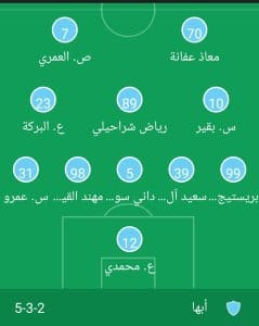 بينما جاءت تشكيل فريق فعل مباراه الاتفاق كالتالي.