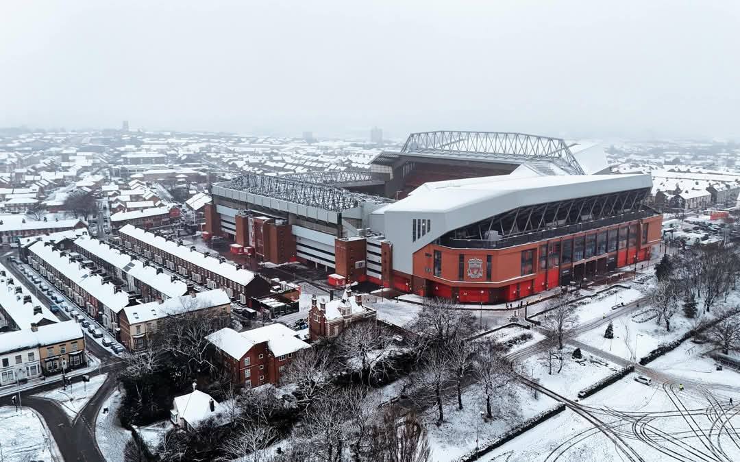 شهد ملعب آنفيلد، محاصرة من الثلوج بكثافة قبل ساعات قليلة على انطلاق مباراة ليفربول ومانشستر يونايتد، اليوم الأحد، في تمام الساعة السادسة والنصف مساءً، في إطار منافسات الدوري الإنجليزي الممتاز.